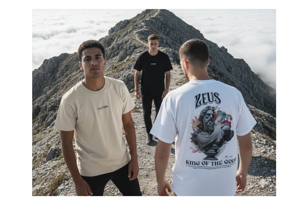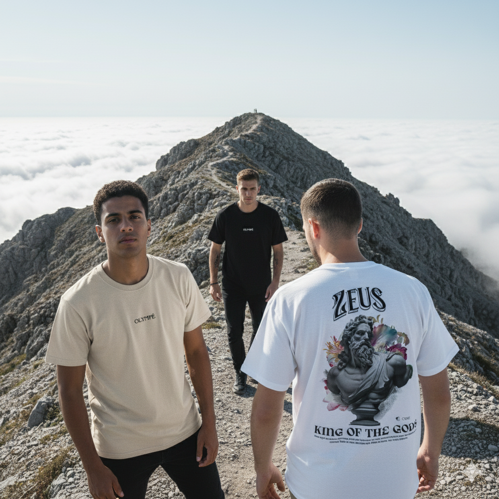 This is a bundle of three of our T-shirts, which includes, the Black Poseidon T-shirt, the White Zeus T-shirt and the Beige Deliberate T-shirt.